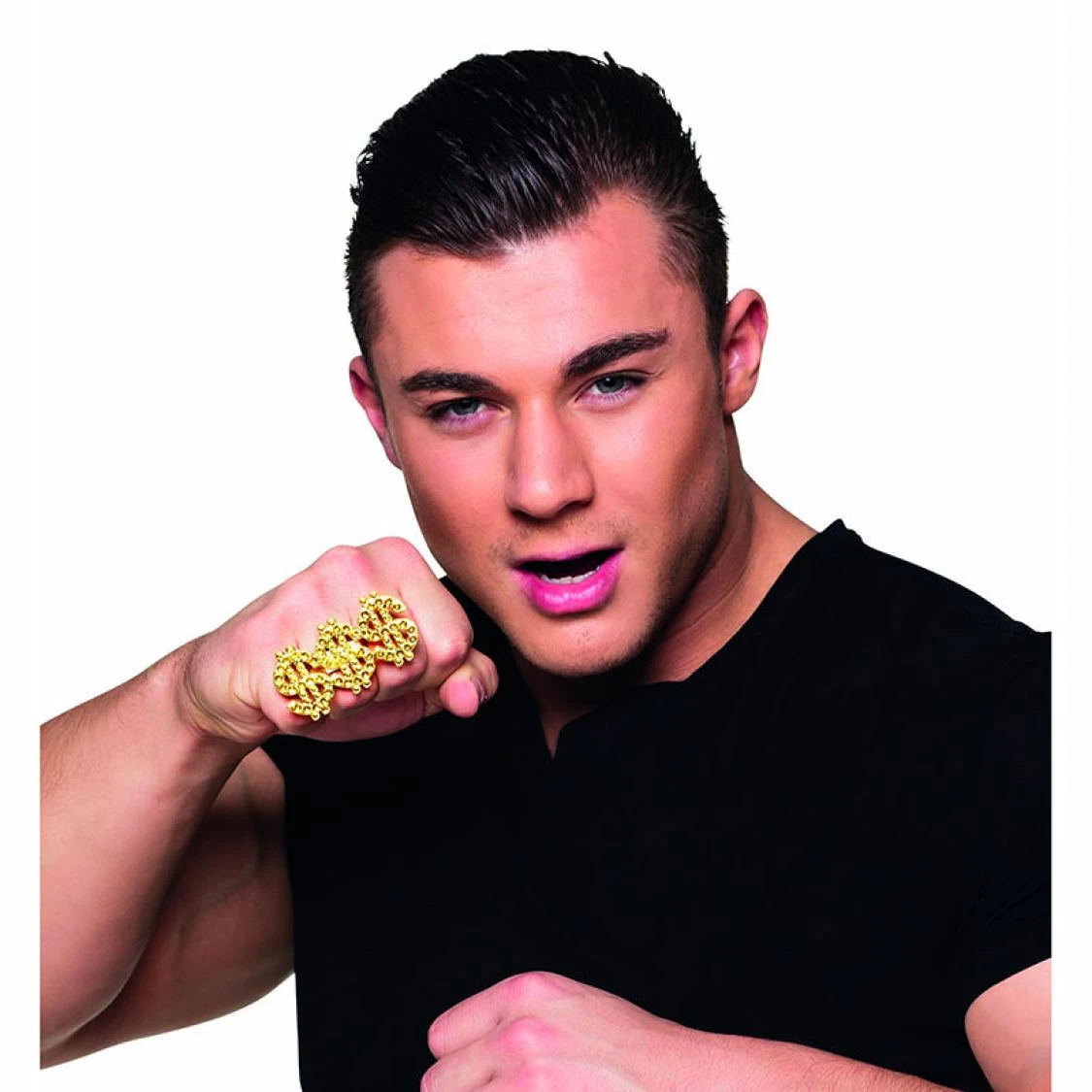 Adoptez un style bling bling jusqu’au bout des doigts ! Cette bague dollars est de couleur dorée , c’est une fantaisie pour adulte qui est ornée de 3 signes dollars avec effet strass. Cette bague est réglable. Cet accessoire sera parfait pour compléter votre déguisement bling bling pour assister à une soirée déguisée