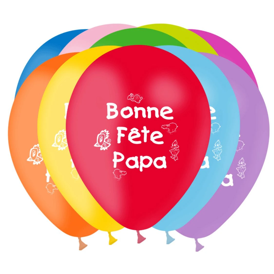 Avec ce ballon latex vous pourrez surprendre votre Papa en réalisant un bouquet de ballons avec un impression une face « Bonne Fête Papa » . Vous pourrez également élaborer une décoration pour marquer cette journée. Transmettez un beau message de façon originale à votre Père, ou décorez vos espaces pour annoncer la fête des pères avec cet assortiment de ballons pour mettre à l’honneur tous les Papas
