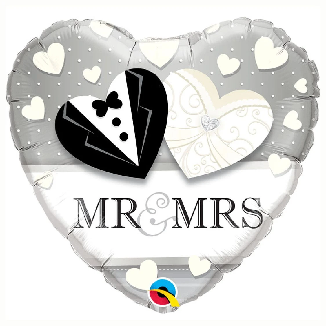 Ce ballon coeur Mr & Mrs Wedding est imprimé avec le Smoking du Marié et la Robe de la mariée . Avec ce ballon original porteur du message Mr & Mrs , vous allez pouvoir décorer l’église, la synagogue, la mairie mais aussi votre salle de Mariage. Vous pourrez aussi composer un bouquet de ballon en associant ce ballon Mariage avec d’autres ballons unis ou du même thème. Il ne vous restera plus qu’à lui dire « OUI ».