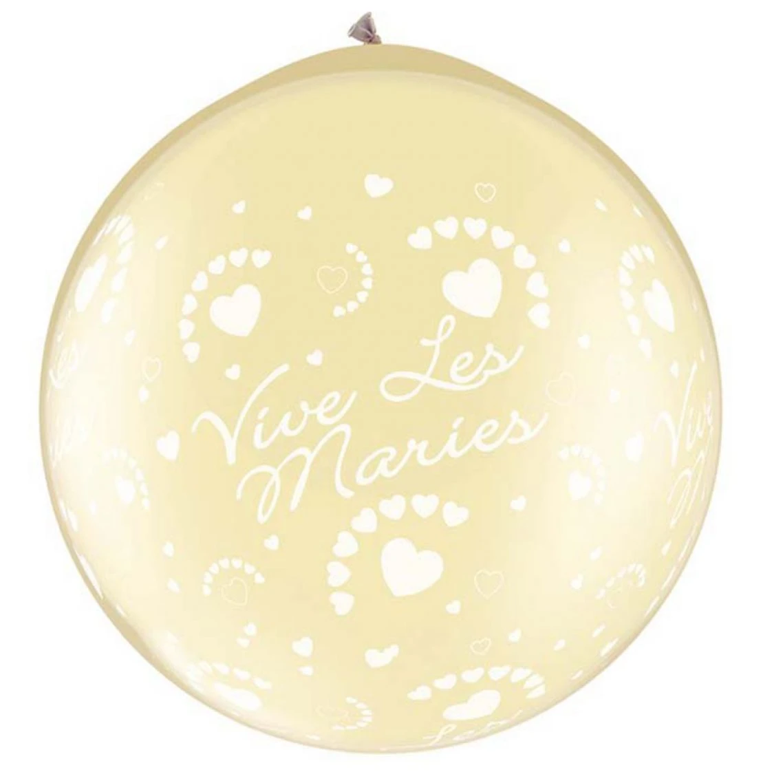 Ce ballon Géant Qualatex , fabriqués aux USA et au Canada, est 100% Latex Naturel et 100% biodégradables. Grâce à ce gros ballon de baudruche , vous allez pouvoir décorer toutes vos salles de mariage sans nuire à l’environnement. Ces Ballons Mariage de la plus haute qualité sont imprimés avec le message « Just Mariage » de couleur blanche. entouré d’une multitude de coeurs, symbole de l’amour. Ces ballons proposés dans différents coloris, pourront vous permettre de décorer vos espaces pour votre réception ou votre cérémonie de Mariage, mais il pourra également etre utilisé pour réaliser une Montgolfière pour récupérer les enveloppes cadeaux.