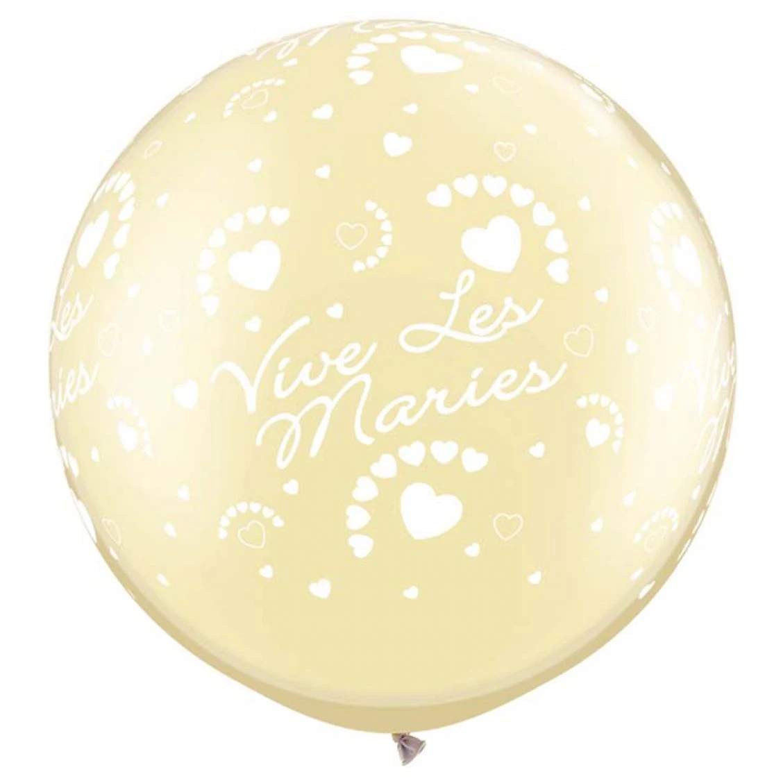 Ce ballon Géant Qualatex , fabriqués aux USA et au Canada, est 100% Latex Naturel et 100% biodégradables. Grâce à ce gros ballon de baudruche , vous allez pouvoir décorer toutes vos salles de mariage sans nuire à l’environnement. Ces Ballons Mariage de la plus haute qualité sont imprimés avec le message « Just Mariage » de couleur blanche. entouré d’une multitude de coeurs, symbole de l’amour. Ces ballons proposés dans différents coloris, pourront vous permettre de décorer vos espaces pour votre réception ou votre cérémonie de Mariage, mais il pourra également etre utilisé pour réaliser une Montgolfière pour récupérer les enveloppes cadeaux.
