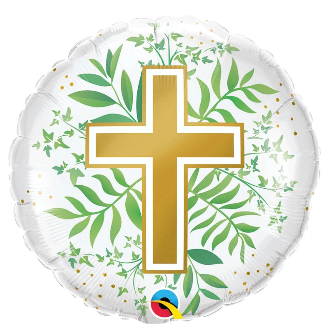 Pour décorer vos espaces pour célébrer vos fêtes chrétiennes , une communion, ou un autre évènement religieux, nous vous proposons ce joli ballon aluminium blanc, de forme ronde sur lequel sont imprimées des branches vertes et une croix dorée. Ce ballon rond a un diametre de 45cm. Vous pourrez lester cs joli ballon sur vos tables de fêtes, où composer de beaux bouquets de ballons pour votre cérémonie religieuse.