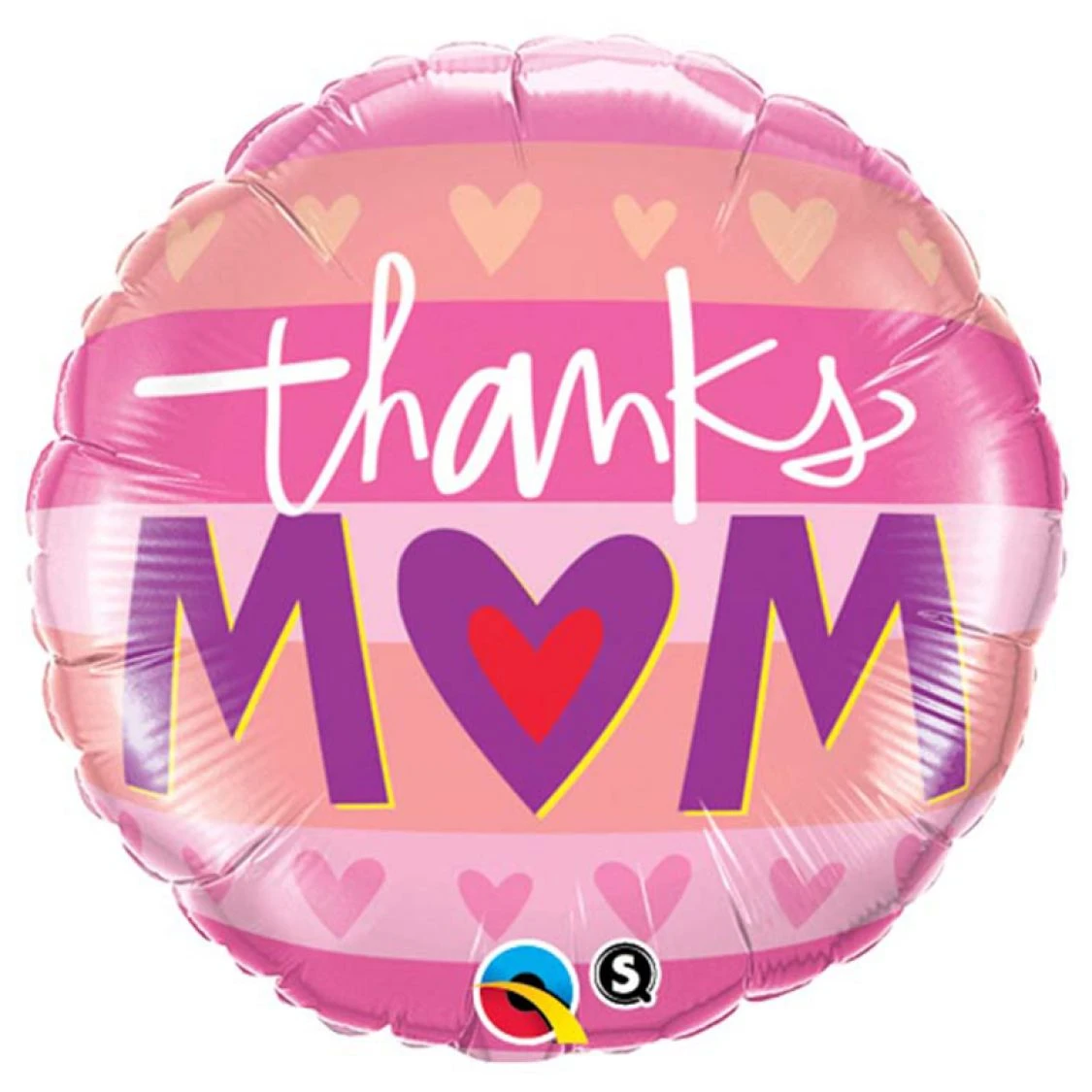 Ce Ballon Thanks Mom, est un ballon en aluminium, rond, à fond rose, avec des rayures tons sur tons avec le message Thanks Mom qui va ravir toutes les Mamans. Ce joli ballon mylar vous permettra de souhaiter une belle fête des mères à votre Maman, ou de lui dire tout simplement Merci Maman en toute circonstance. Ce ballon rond aux couleurs tendres touchera le coeur de chaque Maman.