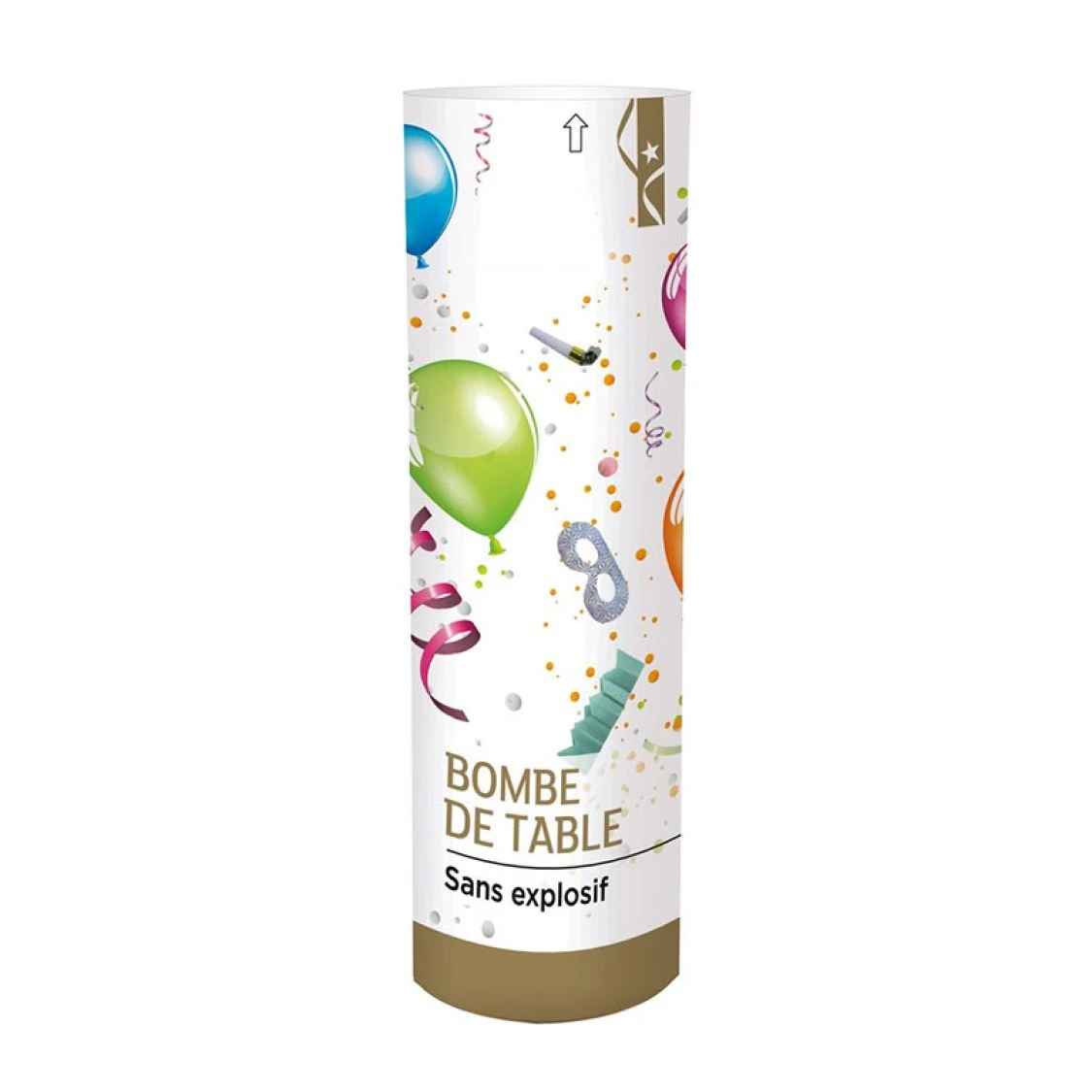 Cette bombe de table est idéale pour lancer l’ambiance. Cette bombe festive est sans explosif , elle fonctionne avec une cartouche d’air comprimé , elle fait du bruit à son déclenchement. Cette bombe de table est remplie de 4 ballons, 2 masques, 2 sans-gênes, 3 couronnes en papier, 10 boules, 2 sarbacanes et 2 trompettes. Cette bombe de table sera la bienvenue dans toutes vos fêtes, elle est facile à utiliser, il vous suffira de tirer sur son anneau qui est relié au fil et elle se déclenchera.