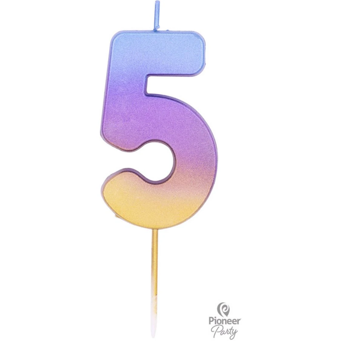 Cette Bougie Anniversaire Chiffre Rainbow est de couleurs dégradées bleu, violet et or. Ces bougies illumineront tous vos gateaux pour fêter chaque anniversaire et en apportant une touche élégante à vos entremets. Cette bougie existe dans tous les chiffres