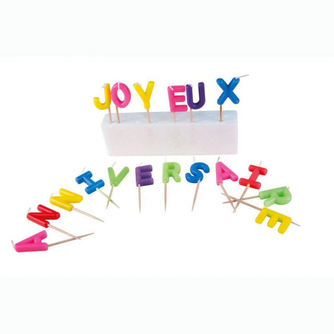 Vous cherchez des bougies originales à mettre sur un gâteau d’anniversaire… nous avons ce qu’il vous faut. Grâce à cet ensemble de bougie lettre vous pourrez poser votre message sur tous les gâteaux. Le mélange de lettre « joyeux anniversaire » et de couleur, mettra tout de suite vos pâtisseries en valeur. Il ne reste plus qu’à souffler.