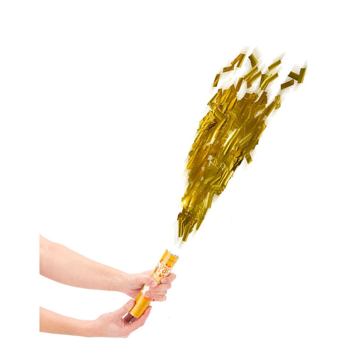 Ce canon à confettis or de 20 cm de hauteur et de 4cm de diametre , est rempli de confettis de couleur doré . Ce canon à confettis or s’utilise aisément, il suffit de tourner sabase. Ce canon à confettis dorés sera le bienvenu dans toutes vos soirées où l’élégance et la brillance seront invitées. Lancez une pluie de confettis dorés sur tous les tapis rouges pour un lancement de film, et épatez vos amis cinéphiles. Ces confettis or sauront trouver leur place dans toutes les manifestations évènementielles : concert, sortie de mariés, lancementt de produit, sorite d’église, une soirée disco, fête d’anniversaire, une kermesse ou toutes les fêtes de rue.