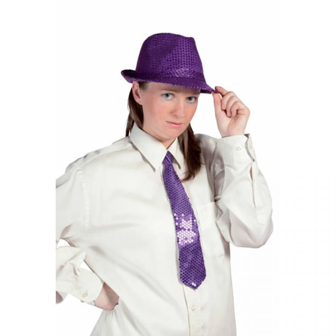 Cravate sequins avec élastique violette. Idéal pour compléter votre déguisement de Michael Jackson.