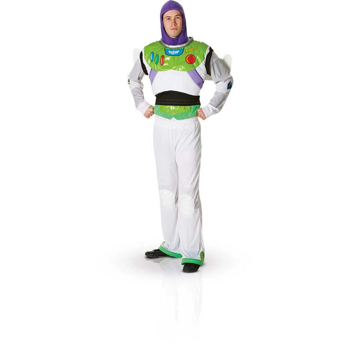 Le déguisement de Buzz l’éclair, est la réplique du costume du héros du film de Toy Story de Pixar. Ce déguisement est composé d’une combinaison en deux pièces, qui est matelassée , d’une paire d’ailes et d’une cagoule,de couleur blanche et verte.