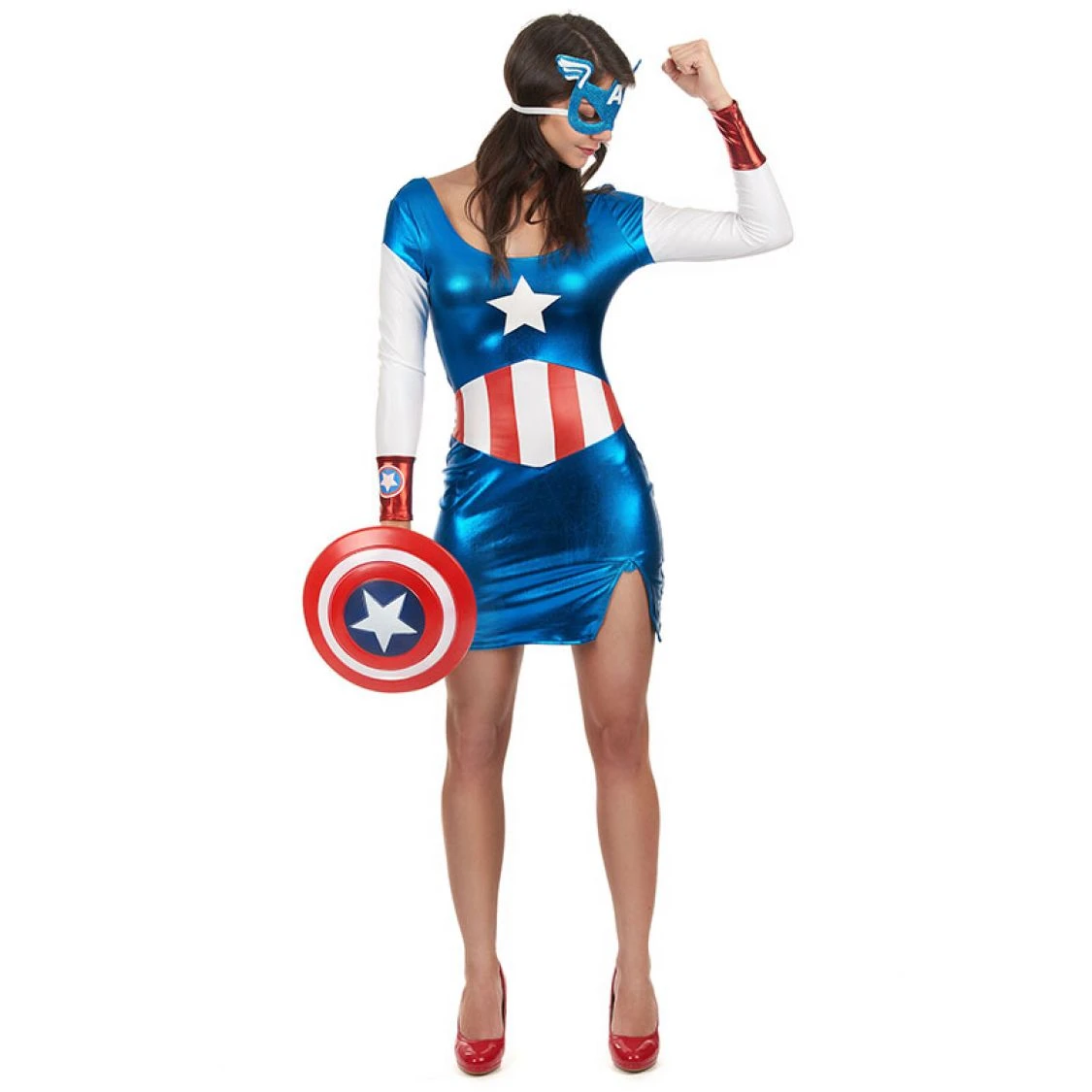 Captain America est un personnage qui est important dans le monde de Marvel. Le déguisement Captain América femme vous permettra d’etre vêtu aux couleurs des Etats-Unis et ainsi vous représenterez le patriotisme Américain , l’égalité et le courage. Dans ce costume Captain América vous serez totalement sexy et vous pourrez charmer tout votre public.. Pour compléter ce déguisement super héros sexy, composé d’une robe fendue et d’un loup assorti, n’oubliez pas de commander le mythique bouclier Captain América. Ce costume Femme Captain America™ sera parfait pour vous permettre d’incarner une super héros Marvel™ pour le Carnaval ou pour une soirée déguisée !