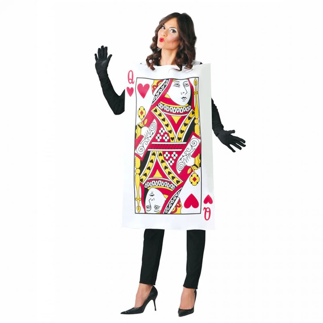 Ce déguisement carte à jouer est un costume pour adulte, est une tunique sur laquelle figure la Reine de coeur, maitresse du jeu de carte. Cette tunique de forme rectangle, est en mousse souple sur le devat, ce qui lui permet un bon maintien tout en étant légère. Ce déguisement Dame de coeur est original et sera iidéal pour uns soirée à thème Casino, ou pour recréer l’ambiance du conte d’Alice aux pays des merveilles. Dame de coeur à toi l’honneur !