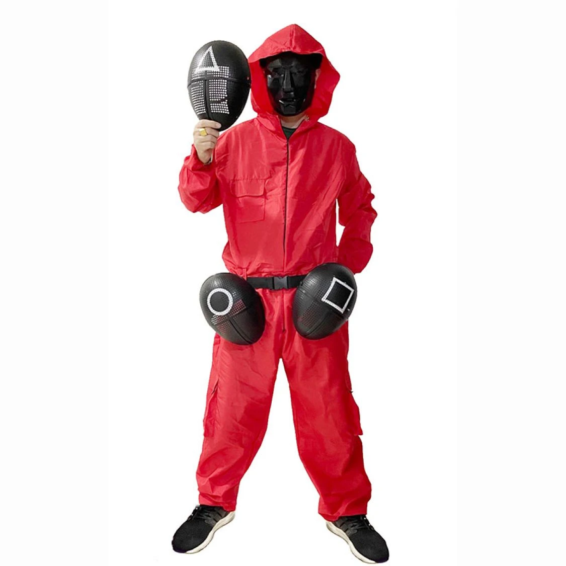 Avec cette jolie combinaison rouge vous pourrez incarner un des soldats de Suid Game. Avec ce costume vous pourrez imitez les personnages de la série coréenne. Cette combinaison sera idéale pour toutesvos soirées à thème ou encore pour fêter Halloween. En quelques minutes habillez aux couleurs de Squid Game et étonnez tous cos amis. Cette combinaison à capuche vous permettra aussi de ressemblez aux braqueurs de la Casa de Papel Qui allez vous incarner : Tokyo, Berlin, Rio,…. c’est vous qui choisirez. Pour compléter votre déguisement nous vous proposons des masques Squid game, ou Casa de Papel. Déguisez vous de façon à etre ni vu ni connu, pour assister à une soirée sur le thème série télévisée.