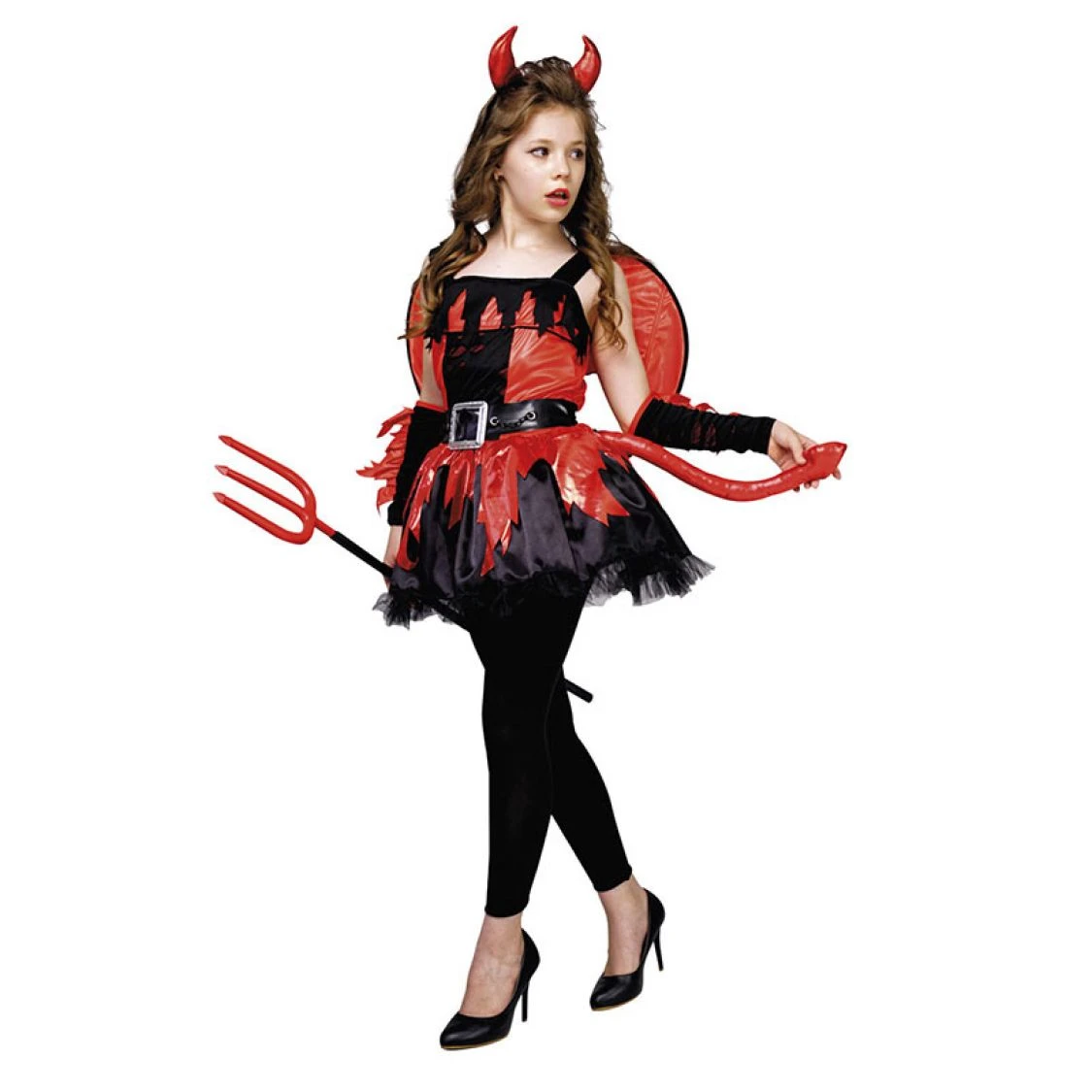 Ce déguisement diablesse enfant est un déguisement complet pour fille aux couleurs noir et rouge. Ce costume de Diablesse qui se compose d’une robe rouge et noire, d’un serre tete cornes , d’un collant sans pied, de manchettes et d’ailes. Le trident n’est pas compris mais vous pourrez l’acquérir dans nos accessoires déguisements. Cet ensemble de diable permettra à votre enfant de jouer les petits monstres d’Halloween le 31 octobre où à l’occasion d’une fête à thème Horreur ou épouvante. Vous pourrez choisir ce joli costume pour faire un joli cadeau, les enfants adorent se déguiser. Avec ce costume votre fille pourra danser la Salsa du Démon.