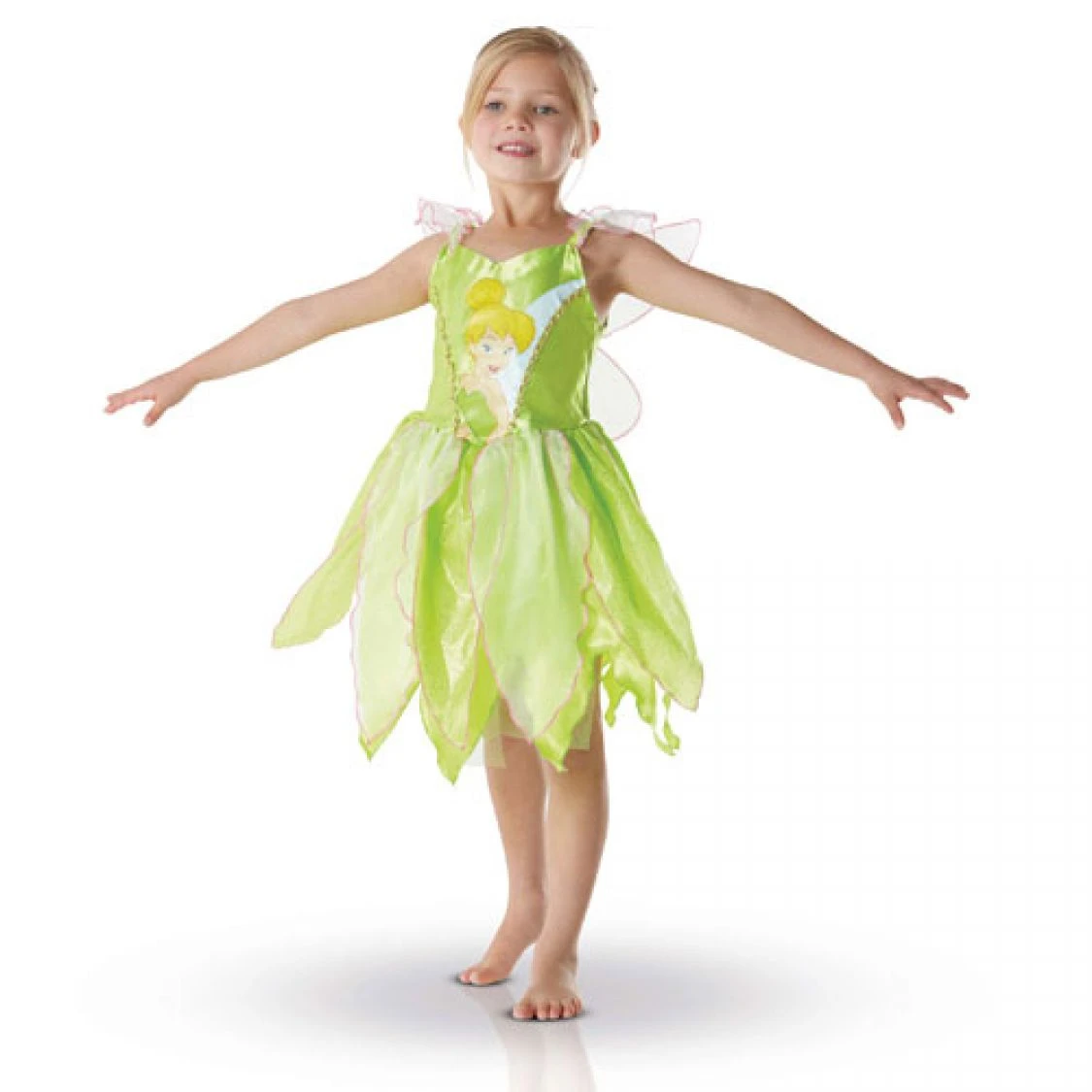 Ce déguisement de Fée Clochette pour fille est composé d’une robe effet satin sur laquelle est imprimée l’éfigie de la fée de Peter Pan, le jupon est en pétales de tulles, et pour compléter la robe il y a également une paire d’ailes en tulle. Ce costume fille ravira vos petites fées et sera idéal pour le Carnaval, pour un goûter d’anniversaire déguisé . Ce joli déguisement de Clochette sera idéal pour un cadeau d’anniversaire ou un cadeau de Noël.