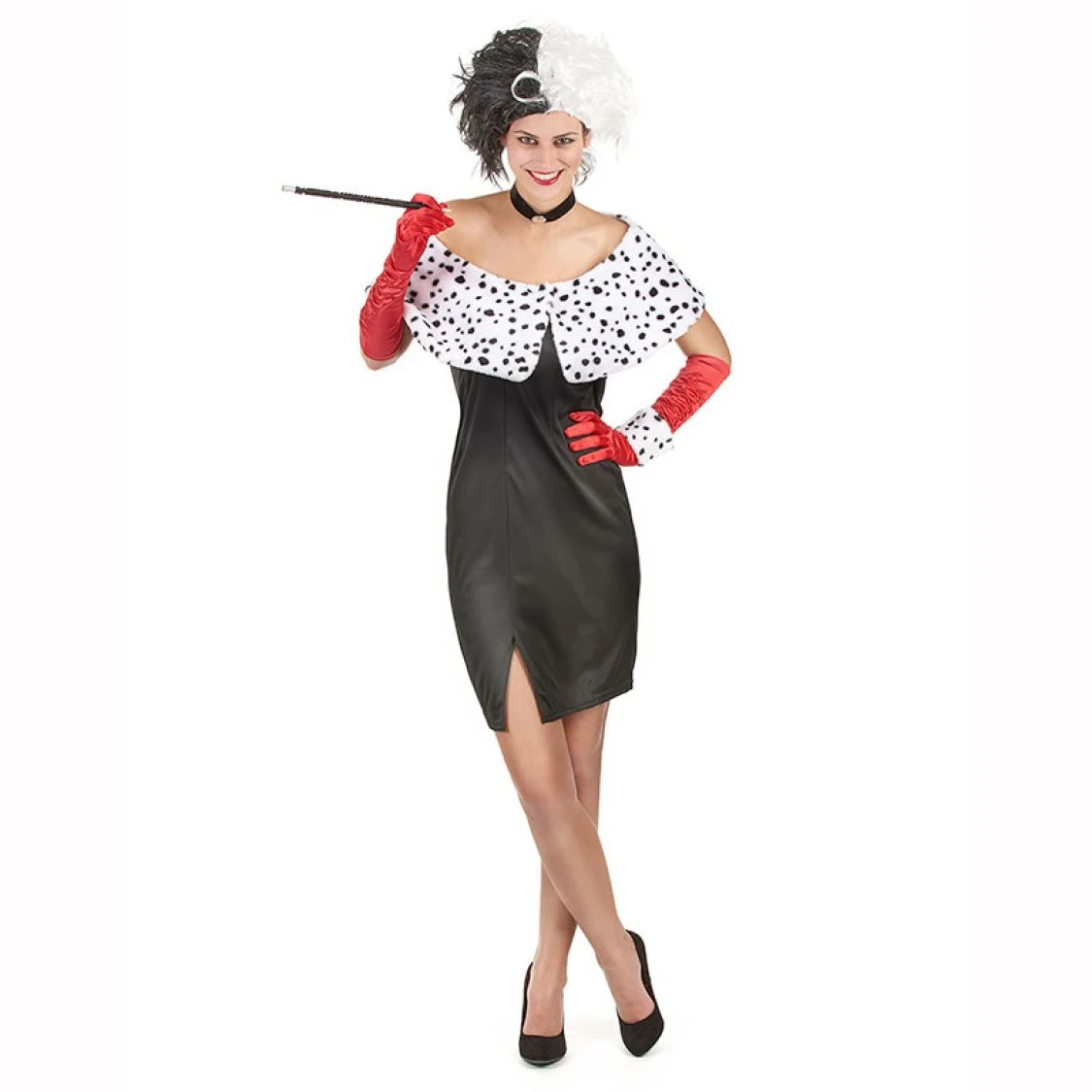 Entrez dans le monde de Disney avec ce déguisement de femme cruelle, femme des temps modernes ! Encore plus élégante et sexy que jamais, vous pourrez revivre les fabuleuses aventures des 101 Dalmatiens avec ce superbe costume de CRUELLA ! Méchante et rusée le temps d’une soirée seront vos grandes qualités ! Alors adoptez ce costume femme composé d’une robe noire bustier, accompagnée d’un cache épaule en fausse fourrure imprimé dalmatien avec une manchette assortie, d’une paire de gants longs rouges, et d’un collier tour de cou noir . Avec ce costume de Cruella, vous pourrez faire ressortir votre côté glamour et vous aurez tous les atouts pour charmer et surprendre vos amis par l’originalité de votre costume lors d’Halloween, de vos réceptions déguisées ou vos soirées à thème Disney.