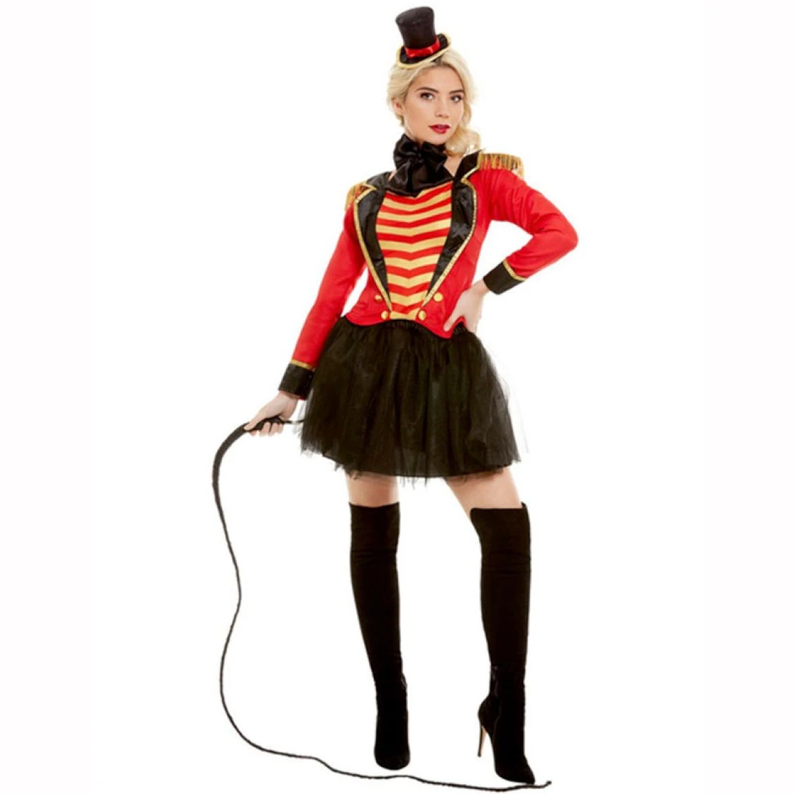 Ce costume de Cirque est une réplique du costume de Madame Loyal. Pour vous permettre de régner comme la maîtresse du cirque à toutes les fêtes déguisées, nous vous proposons ce joli déguisement femme. Ce déguisement de Madame Loyale est composé d’une jupe, d’un haut, d’un serre-tete et d’untour du coudans les coloris rouge, or et noir. Grâce au Costume Madame Loyale , vous accueillerez les grands comme les petits pour tous les évènements à thème cirque, ou simplement au carnaval.