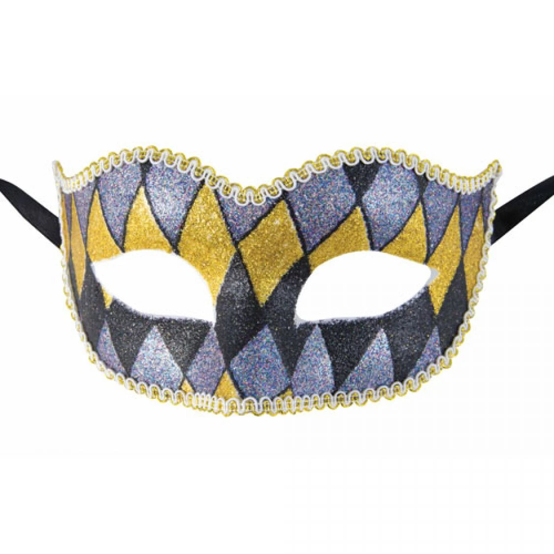 Ce Loup Vénitien plastique Arlequin gris noir et or est l’accessoire parfait pour vos fêtes ou le carnaval.