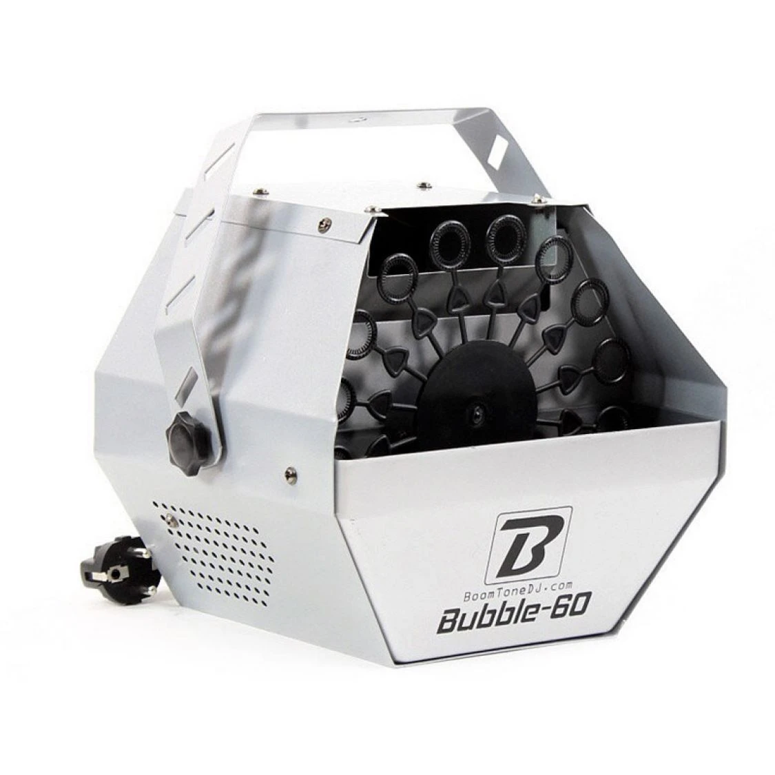 Cette Machine à bulles de savon est un excellent modèle qui produit une quantité impressionnante de bulles .Sonréservoir est facile à l’enlever. Vous pourrez la suspendre grâce à son étrier de fixation.Les enfants comme les grands passeront une merveilleuse soirée à vouloir éclater ces petites et fragiles sphères !! La machine à bulles de savon BoomToneDJ Bubble 60 V2 a 16 anneaux bulles rotatifs .Livrée sans télécommande, son alimentation est externe. La machine à bulles de savon produit un flux puissant de grosses bulles.La capacité du réservoir de la machine à bulles est de 0,75L.