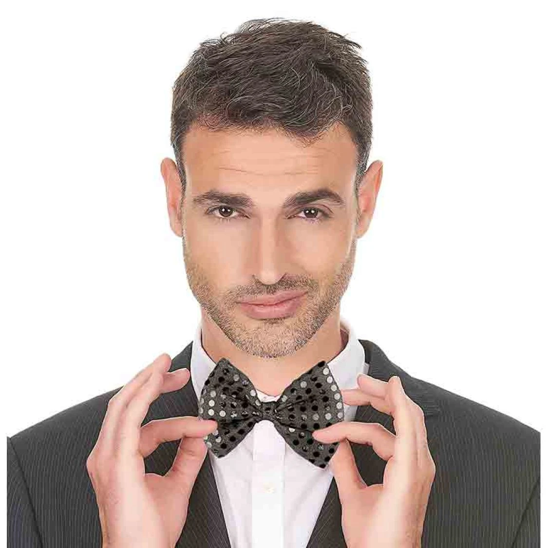 Ce nœud papillon est de couleur noir et est réalisé dans un tissu sequins . Ce Noeud papillon sequins noir pourra s’attacher facilement autour de votre cou pour apporter une touche de fun à votre costume lors d’une soirée déguisée !
