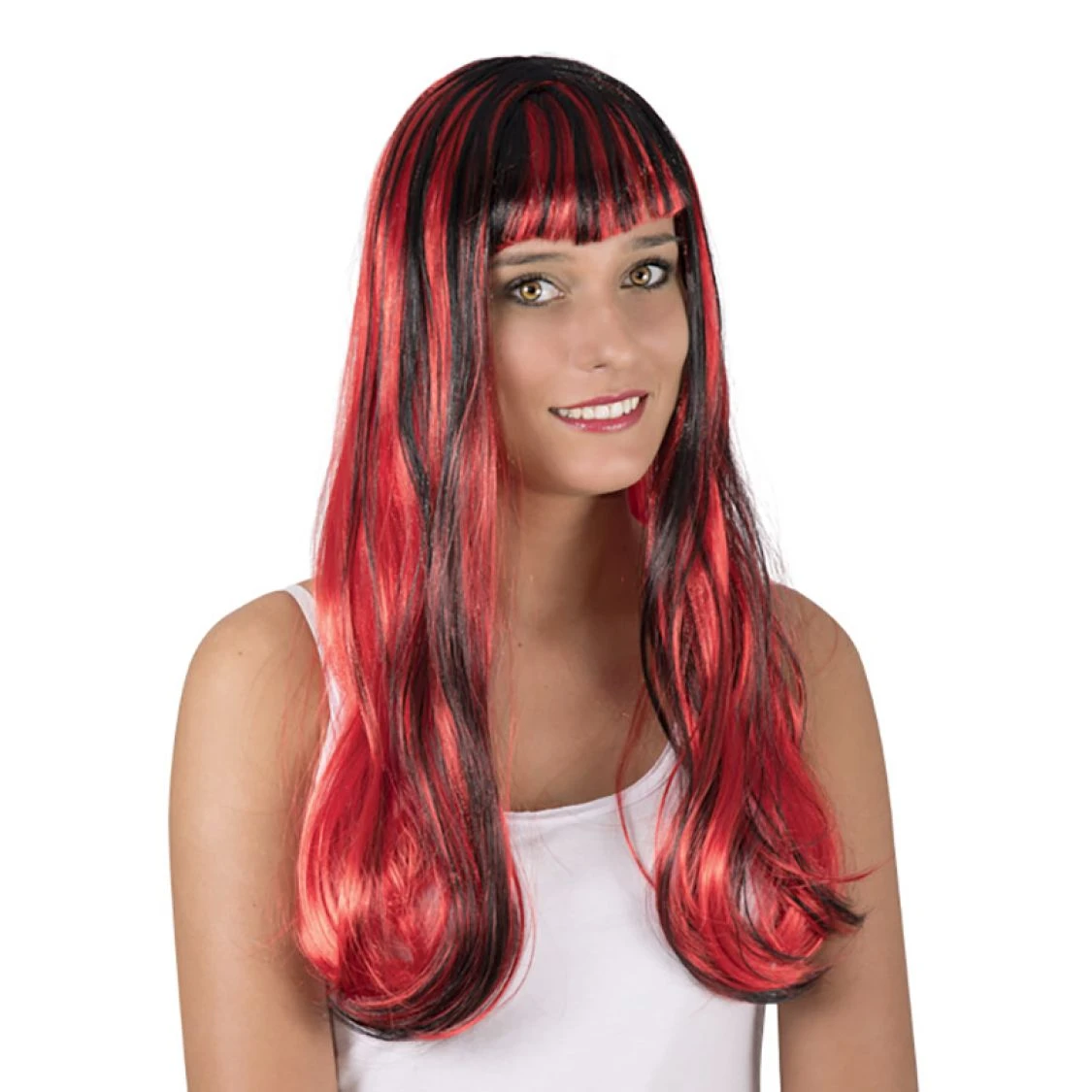 Pour Halloween, nous vous proposons cette perruque pour femme, elle est longue avec des cheveux raids de couleur noire et rouge. Cette perruque est coupée avec une frange. Elle sera l’accessoire idéal pour compléter e nombreux déguisements pour toutes vos fêtes costumées.