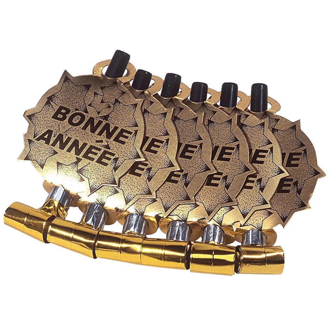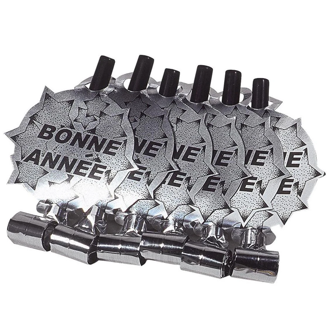 Qui ne connait pas le sans-gêne, ce petit objet dans lequel on souffle et qui est présent à toutes les fêtes joyeuses, réveillon, Noël, Nouvel an, mariage, etc. Ce sans gène appelés aussi langue de belle mère est proposé en 2 coloris : or ou argent, et a la particularité de porter le message bonne année .Faites briller toutes votre soirée de jour de l’an en vous amusant.