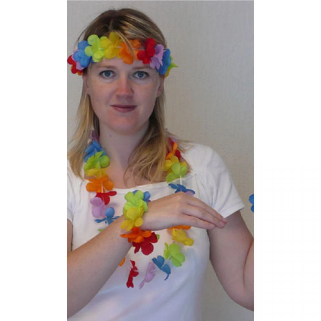 Très joli set hawaïen qui comprend:un collier, un collier pour les cheveux et 2 bracelets.