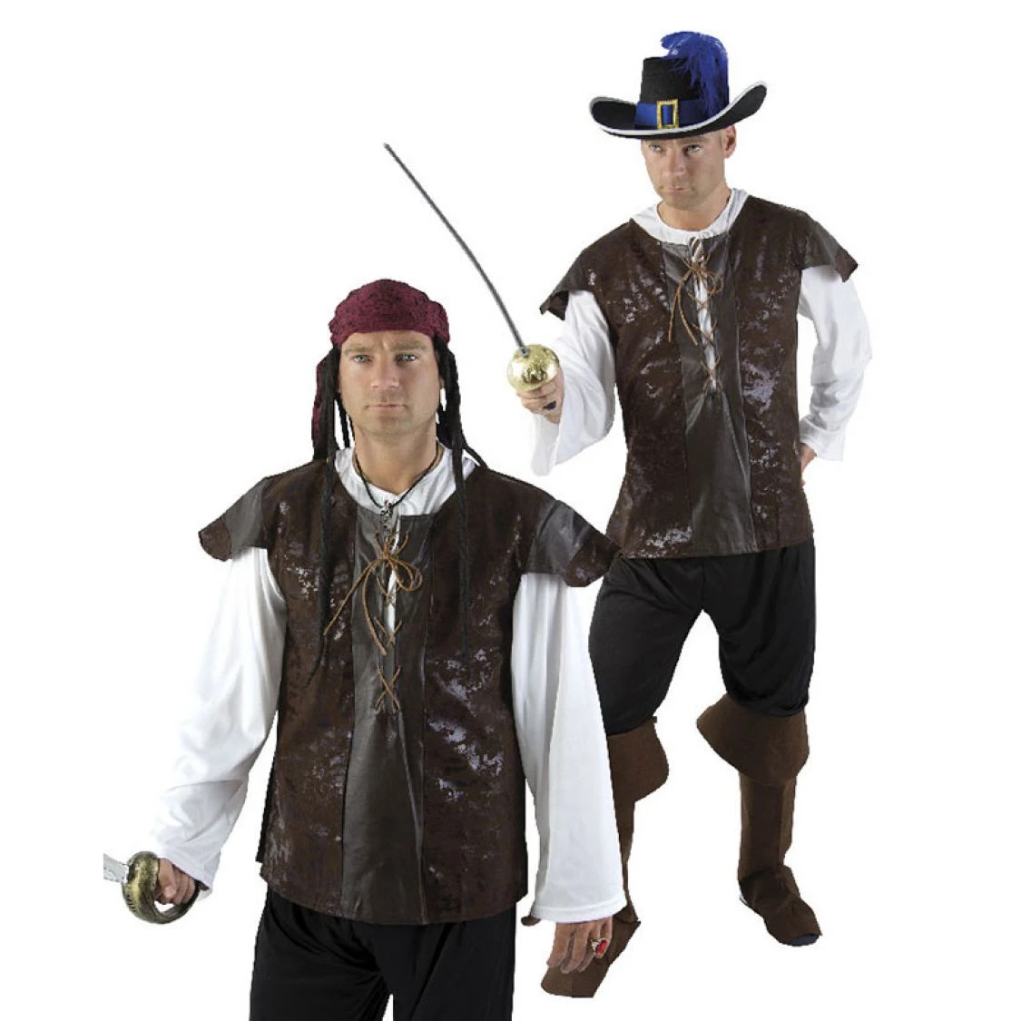 Cette tunique avec lacets est en simili cuir marron, elle trouvera sa place sur un déguisement de pirate, marquis ou autre. Elle sera le complément idéal de votre déguisement, et y mettra une touche finale. Cette tunique en simili cuir vous donnera une allure élégante.